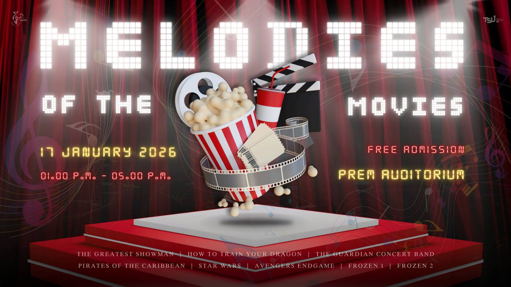 ขอเชิญรับชม การแสดงดนตรีโดยนิสิตวง “Parichart Wind Orchestra Thaksin University” ภายใต้ชื่องาน “Melodies of the Movies” ท่วงทำนองแห่งภาพยนตร์